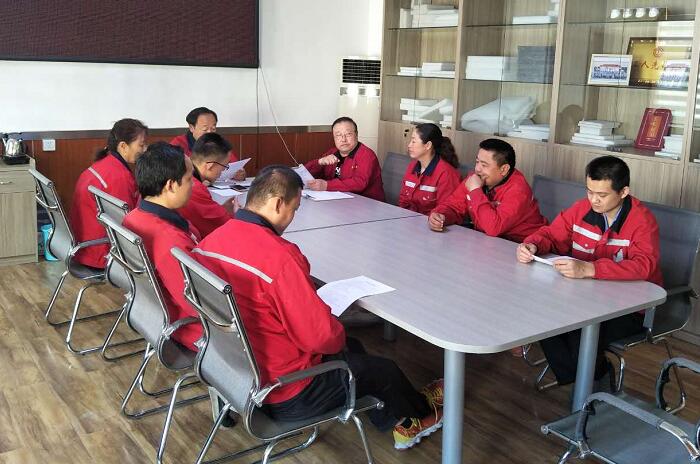 2018年5月14日星期一,噴膠棉分廠順利召開中層干部管理會議,中層管理例會上,劉博主任針對安全生產(chǎn)方面做了細致的分析和建議,提出“安全責任重于泰山”的思想,大家都在非常認真的學習。